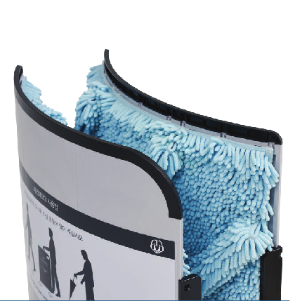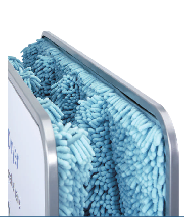Der Trockner funktioniert komplett mechanisch, es wird kein Strom benötigt. Das macht ihn überall einsetzbar – vom Hoteleingang bis zum Messegelände.